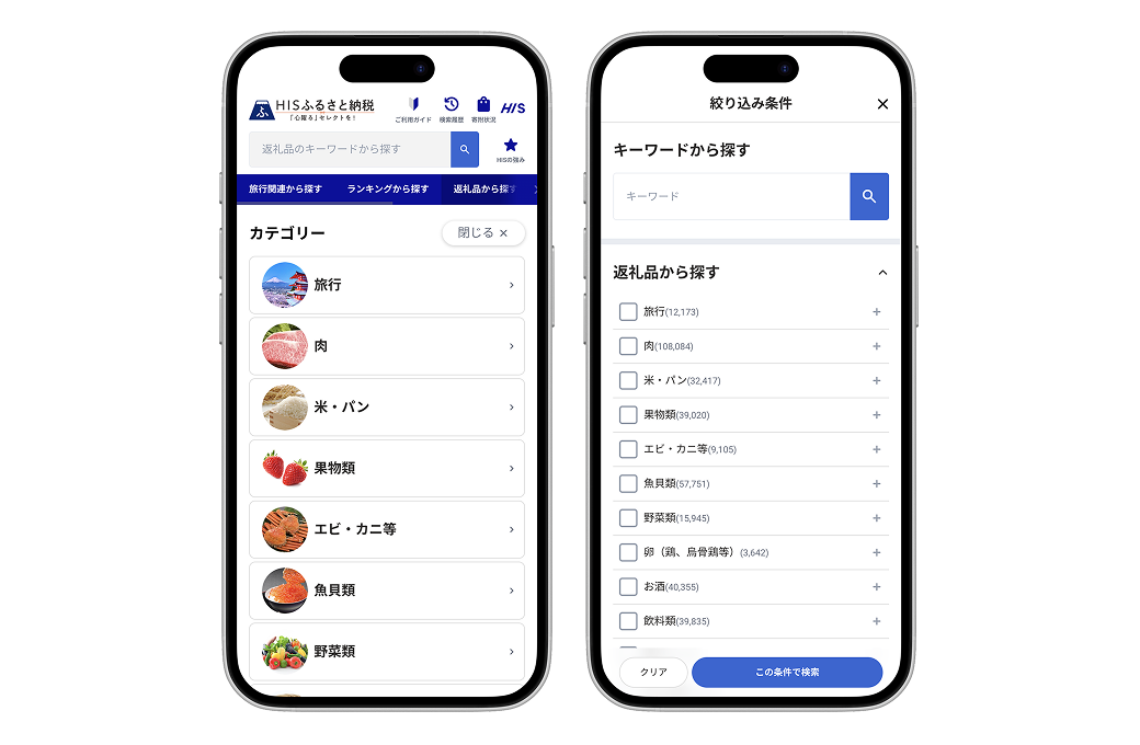HISふるさと納税では、返礼品数とサイトの使いやすさにこだわりました。