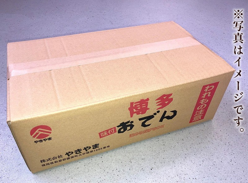 かつおベースのだしにアゴだしを加えた本格スープで味付けし、九州ではベーシックな6種類の具材(糸こんにゃく・ちくわ・玉子・ごぼう巻・三角こんにゃく・大根)が入ったレトルトおでんです。