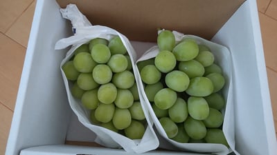 今年の9月にいただいたものの感想ですが、ぷりっぷり、大粒で、立派なシャインマスカットでした。もったいないから少しずつ、1週間くらいかけて食べましたが、最後までパリっとしていました。新鮮な証拠なのだと思います。