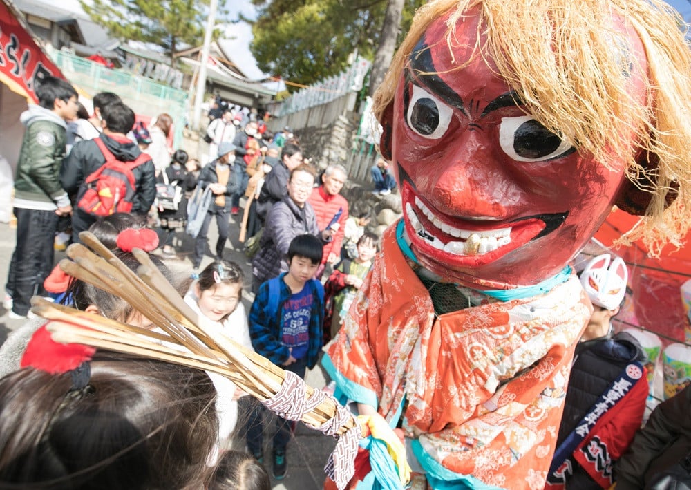 地元の人々によって仕込まれたどぶろく酒が振舞われ、赤ら顔の猩猩しょうじょうが練り歩く「天下の奇祭」。室町時代から500年以上も続く伝統行事です。投げ餅も行われ、毎年多くの参拝者でにぎわいます。