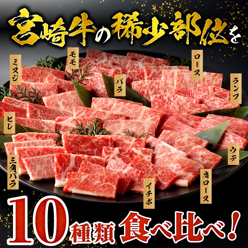 稀少部位を含めた、10種類の宮崎牛を贅沢にご堪能ください!