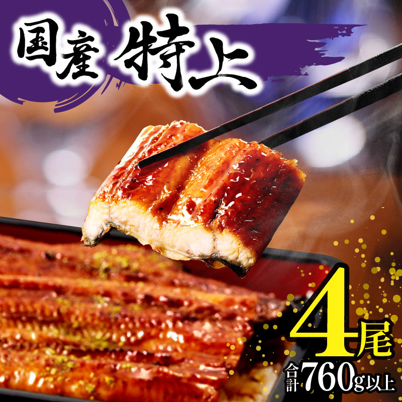 国産特上うなぎ蒲焼 4尾(計760g以上)