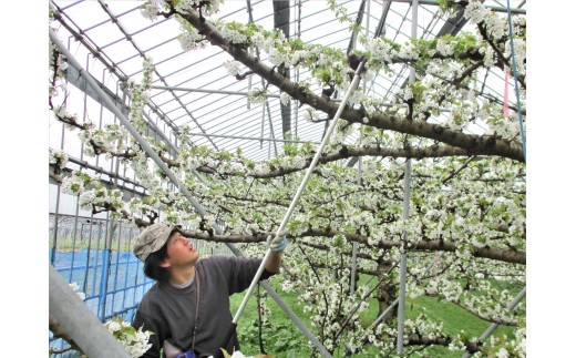 人工受粉から収穫まで神来社農園で丹精込めて育んだ佐藤錦です。
