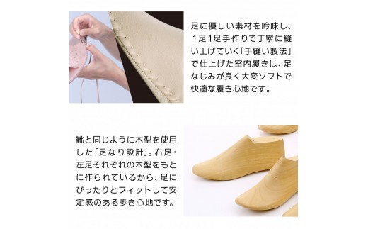足の形に優しく馴染み、上質なくつろぎを叶える特別な一足は、大切な方への贈り物にも最適です。