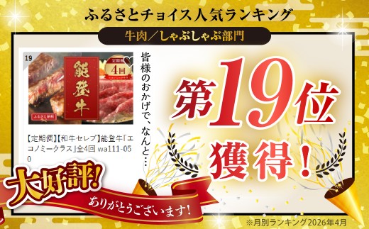 【定期便】【和牛セレブ】能登牛「エコノミークラス」全4回 wa111-050