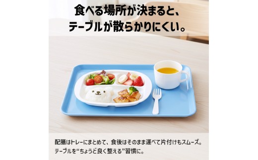 トレーを置くだけで食べる場所が自然に決まり、食器やカトラリーもまとまります。食後はトレーごと運べるので、片付けの手間が増えにくいのもポイントです。テーブルの上が散らかりにくく、日々の食事が整いやすくなります。
