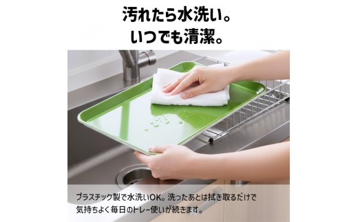 表面のすべり止め加工で、コップやお皿が滑りにくく配膳が安定します。飲み物を運ぶ時やテーブルへ移動する時も手元がぶれにくく、毎日の食事がスムーズになります。お子さまのお手伝いにも使いやすい設計です。