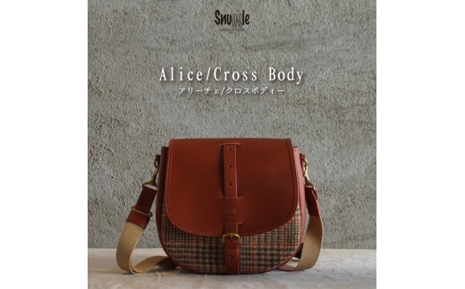 【4パターン展開】 アリーチェ クロスボディー 【コニャック】 革小物 ハンドメイド 手縫い 一点物 革カバン トートバッグ レザートート スナッグルレザー (本体:ツイード×ショルダー:レザー) [№5915-7179]1805