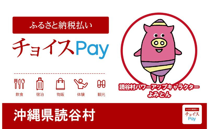 "日本一人口の多い村読谷村には毎年多くの観光客の方が訪れます。 そんな魅力溢れる読谷村をもっと楽しんで頂こうと、ふるさと納税を上手く活用した仕組み「チョイスPay」があります。 滞在中に使えるチョイスPayは泊まって、食べて、買って、体験できる仕組み! 現在、加盟店舗は約110店舗を超え、今現在も増えています。チョイスPayで読谷村を遊び尽くそう!"