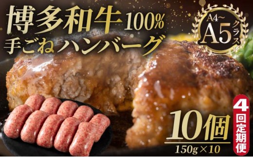 <定期便・全4回>博多和牛100%!贅沢本格 手ごねハンバーグ 10個【久田精肉店】|国産牛 ブランド牛 ブランド和牛 無添加 肉汁 ジューシー 福岡県産 国産牛 100% 個包装 小分け 冷凍 惣菜 おかず お弁当 夕食 時短 簡単調理 送料無料 福岡県 那珂川市