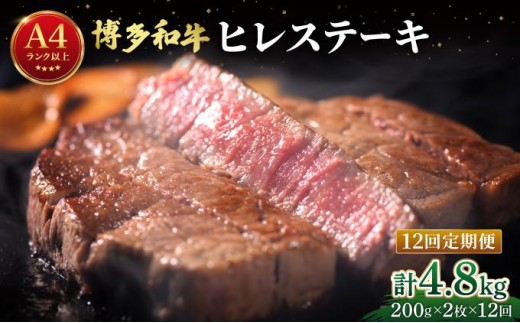<定期便・全12回>希少部位!博多和牛 ヒレ ステーキ 400g(200g×2枚)【肉のくまもと屋】|ヒレステーキ ステーキ 赤身 ヒレ ヒレ肉 フィレ ヘレ 牛肉 黒毛和牛 国産 肉 和牛 希少部位 黒毛和牛 冷凍 送料無料 福岡県 那珂川市