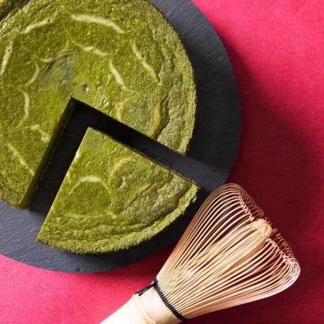 祇園辻利さんの上質抹茶使用の、濃茶チーズケーキ。