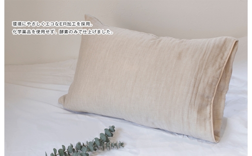 ガーゼの素材感と優しい色合いが、心地の良い睡眠を促すピローカバーです。