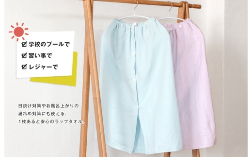 通常のラップタオルより薄手でかさばらず、 速乾性に優れているのでお洗濯も簡単で衛生的な点もポイント。