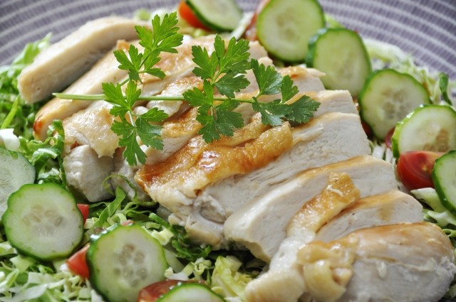 チキンサラダでヘルシーに楽しめます。ダイエットにもどうぞ。