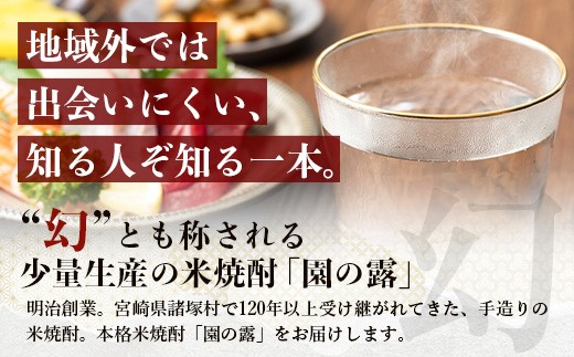 【老舗酒蔵の本格米焼酎】 園の露 25度 1,800ml×1本|焼酎 米焼酎 酒 お酒 アルコール 晩酌 かめ仕込み 木だる蒸留 川崎醸造場 宮崎県 諸塚村 KW-01