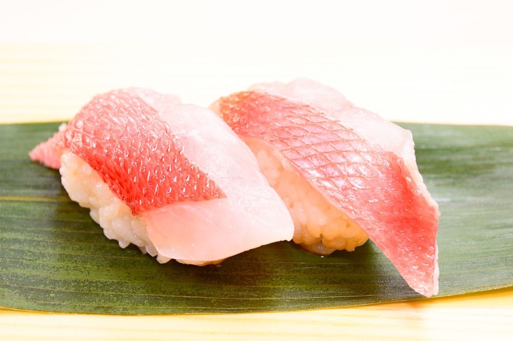 鮮度抜群で、脂の乗りが絶妙な勝浦市産の金目鯛を使用した握り寿司。