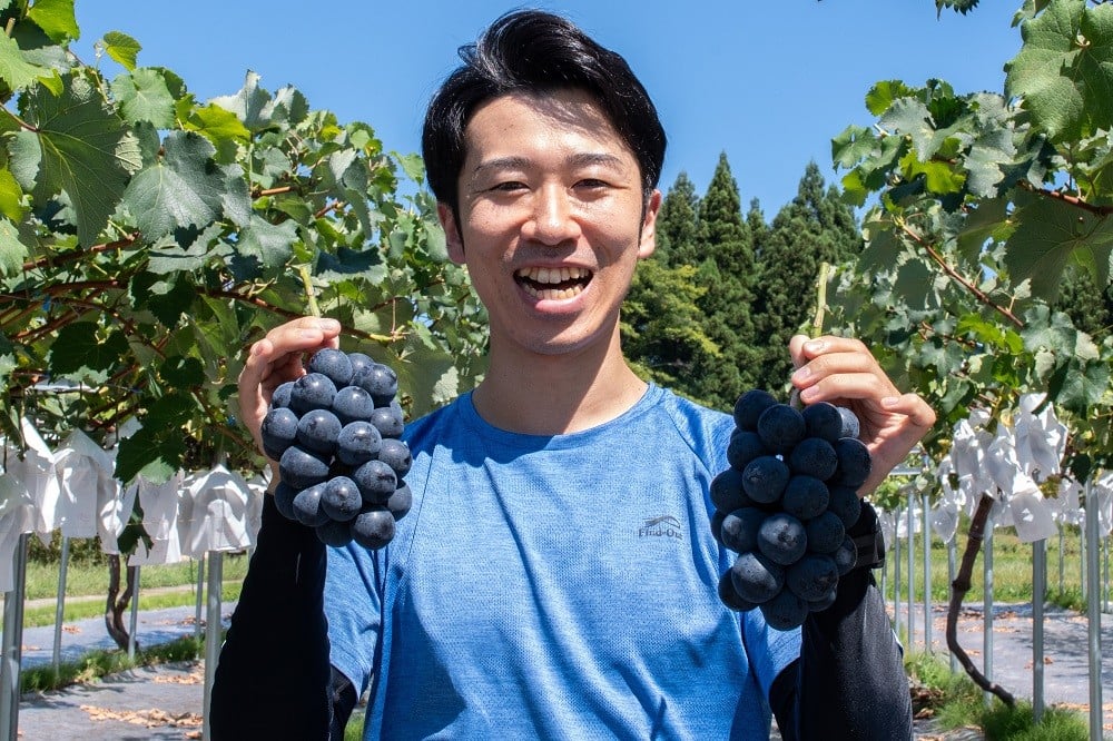 高校時代から地元を元気したいと考え、大学卒業後すぐに地元・飯山に戻り、ぶどうの栽培に着手しました。