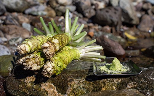 堤農園の本わさびは、世界農業遺産にも認定された伝統ある畳石式のわさび沢で栽培しており、口に入れた瞬間にツンとした爽やかな辛みが鼻から抜け、そのあとわさびの甘みや香りが広がっていきます。