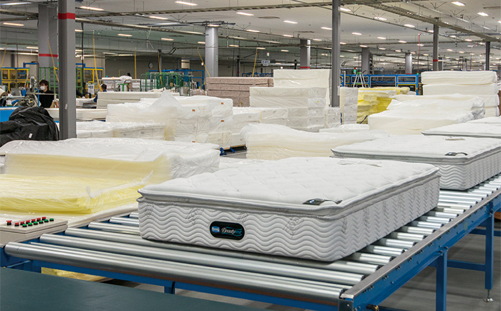 シモンズの富士小山工場では、ポケットコイルマットレスを長年作り続けてきた伝統の技術とノウハウを常に革新し続け、他ではまねのできない、質の高い製品を作り続けています。