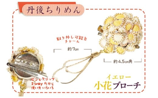 小花のブローチ!(イエロー)丹後ちりめんを使ったブローチです! アクセサリー 入学式 卒業式 フォーマル ハンドメイド ブローチ イエロー おしゃれ かわいい AM00294