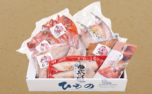 丸富の人気の詰め合わせ、高級白身魚「百花繚乱」、金目鯛が入った干物詰め合わせ、「だし仕込み西京漬け・干物」セット、とこだわりの干物を6ヵ月にわたりお届けします。