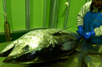 「美味しいマグロを美味しいままに提供したい」そのためイケスのマグロは、一本釣り。