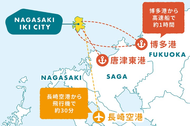 飛行機やフェリー・高速船などを利用して、福岡、佐賀、長崎からのアクセスは抜群です。