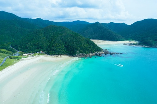 五島市の海は日本一といわれるほど美しく、コバルトブルーの海と白砂の海岸が魅力です。