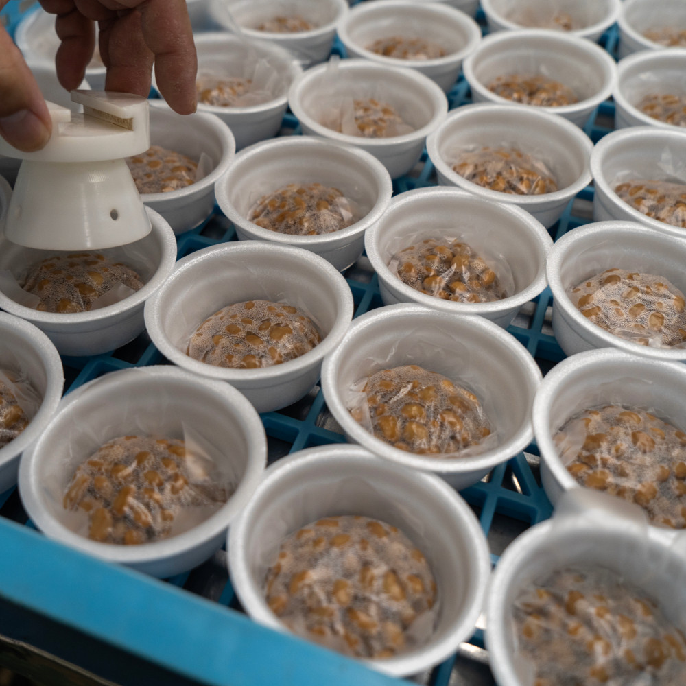 最初はホエイ菌と納豆菌の共存が難しく苦労をしましたが、研究により配合の黄金比を発見し、通常の納豆よりもマイルドな味わいで栄養満点な納豆に出来上がりました。