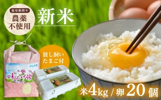 【令和7年度米】4kg・放し飼いたまご20個セット ヒノヒカリれんげ米 元気たまご【浅田峠自然塾】 [EA19]