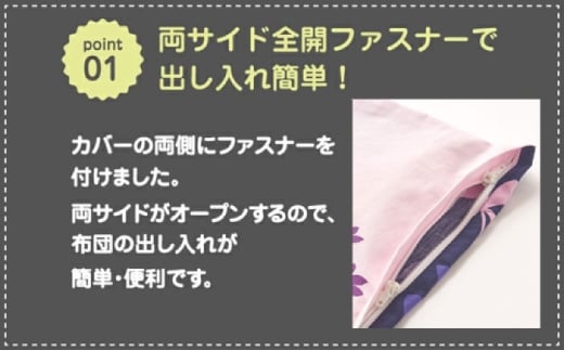 8ヶ所ホック使用でズレにくく、取り付けしやすい両サイドファスナー仕様です。