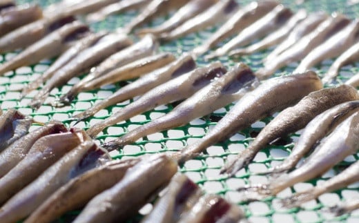 弊社では冬~春に根室で水揚げされた魚を、北方領土を眺める干場で天日干ししています。極寒の浜風により魚の身が引き締まり、焼き上がりはふわっとした食感になります。