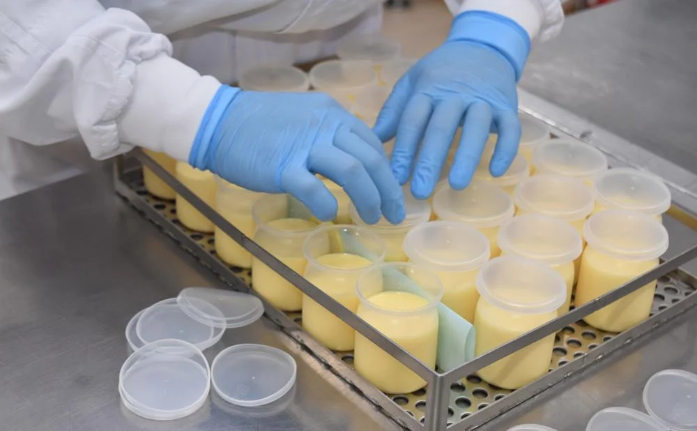 最初に北海道産の生乳と卵、甜菜糖(てんさいとう)を練り合わせます。生乳はチーズの製造過程で出来るホエーを使用。