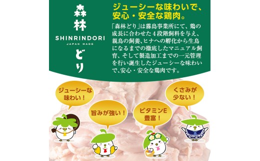 「森林どり」は霧島事業所にて、鶏の成長に合わせた4段階飼料を与え、 親鳥の飼養、ヒナへの孵化から生鳥になるまでの徹底したマニュアル飼育、 そして製造加工までの一元管理を行い誕生したジューシーな味わいで、安心・安全な鶏肉です。