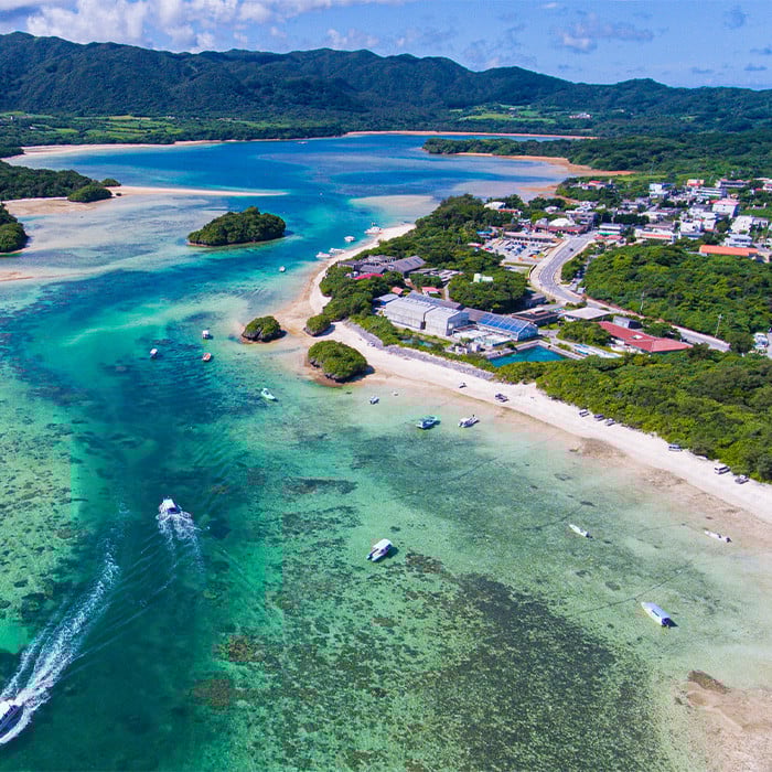 沖縄本島、西表島に次いで、県内で3番目に大きな島で南国特有の温暖な亜熱帯海洋性気候と、透明度の高い海が魅力で、特にマンタとの遭遇率はとても高く、世界中から多くのダイバーが訪れることで有名です。