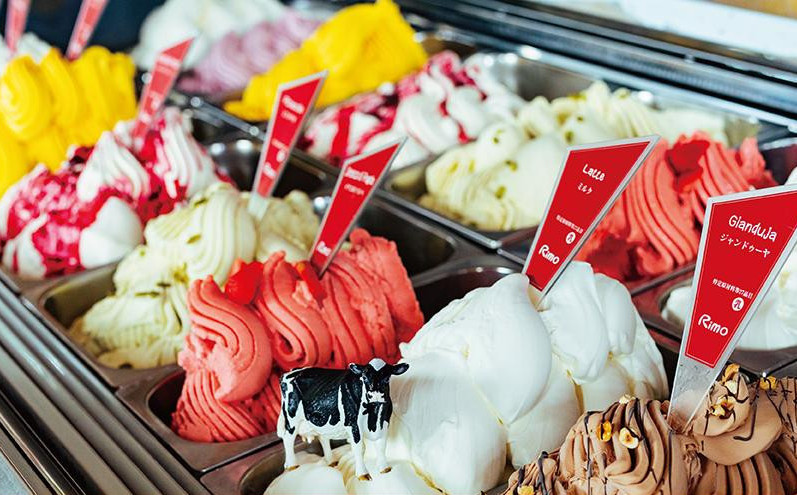 雄大な放牧地で育った健康な牛のミルクで作るRimo網走本店のジェラート。
