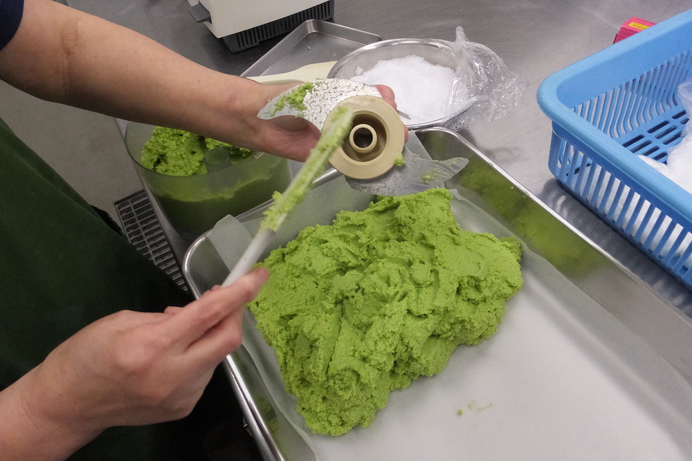 タレも全て自家製で製造しております!出来る限り地元、岩手県のもの、国産のもので作っております。写真は北上市で採れた枝豆をずんだにしているところです。おばあちゃんが甘いのがごちそうだった頃のレシピや製造方法を守り続けております!