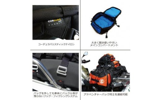 素材には最強のナイロンといわれるコーデュラバリスティックナイロンほか、リップストップナイロンや止水ファスナーを使用。