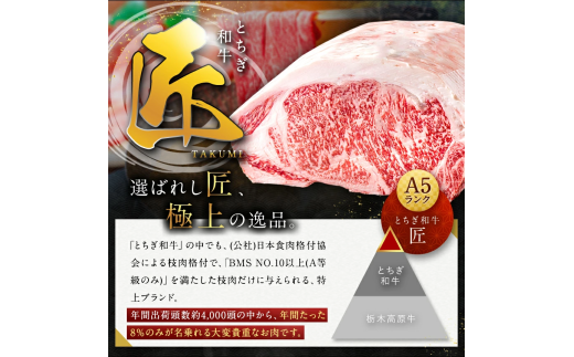 とちぎ和牛の中でも特に質の高いA5ランクに限定。これは肉質や霜降りのバランス、色合いの美しさが最高峰の評価です。