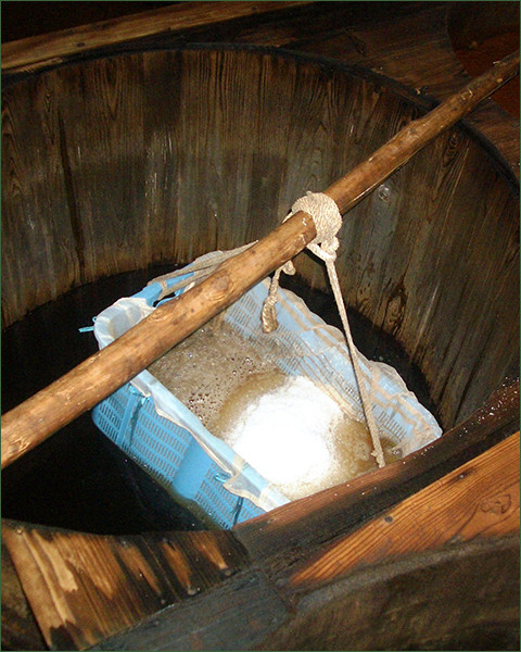 蔵の中には創業以来の酵母菌がたっぷり住み着いています。いつも4月に醤油を仕込み、6月頃は発酵が進み酵母菌の合唱がプチプチと蔵の中でさえずっています。
