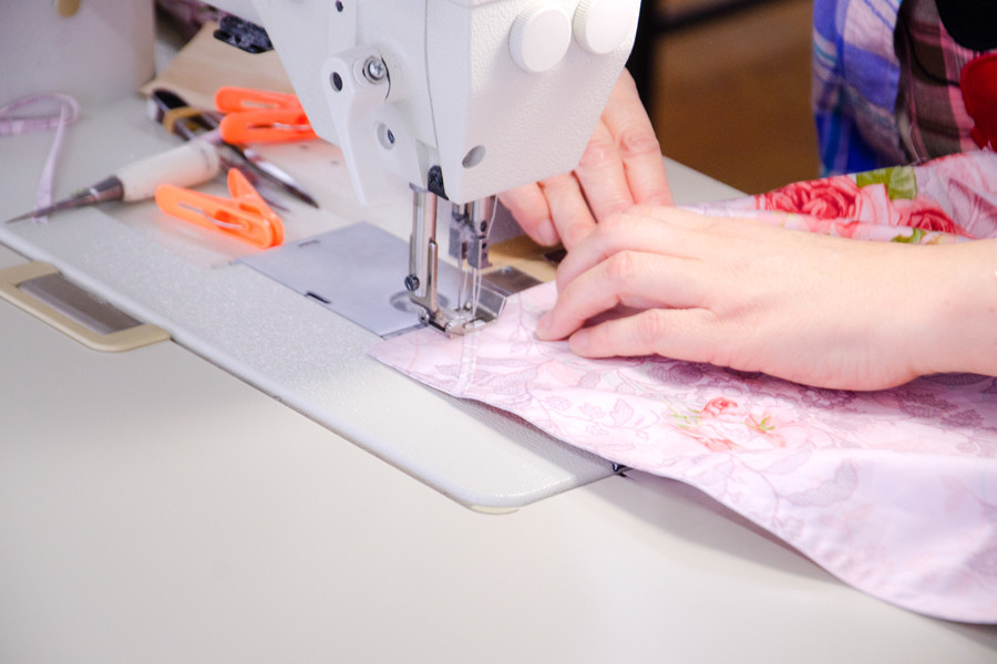 現代の工業技術をもってしても、お布団の側地のすべて縫製工程を全自動で完成させることは出来ませんでした。ニット製のお洋服などで全自動の仕上げが出来るようになった例もありますが、羽毛布団やマットレスは現在も職人が手作業で一枚一枚を縫い上げています。松山機業は本物志向にこだわり、自社一貫製造、工場直販の商品をお届けしています。