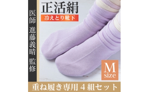 正活絹 冷えとり靴下 基本シルク・コットン4組セットA(Mサイズ)【1581450】
