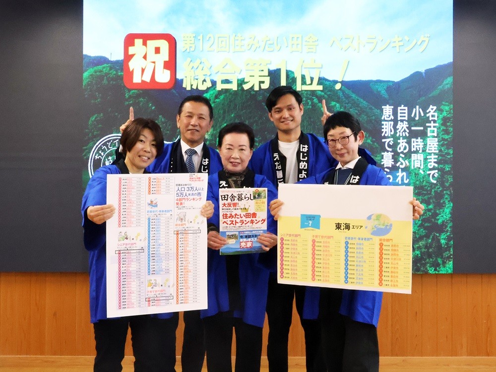 恵那市は移住支援や子育て支援にも力を入れており、2024年版「住みたい田舎ランキング(人口3万人以上5万人未満の市)」で総合1位に選ばれました。今後もより住みやすい地域を目指し、魅力的なまちづくりに取り組んでまいります。