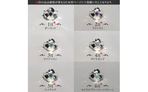 古くから、身に着ける事でお守りになると言われる各月ごとに定められた「誕生石」をハナミズキの中央にセットし、リング一周が桜の花びらで繋がるデザインです。