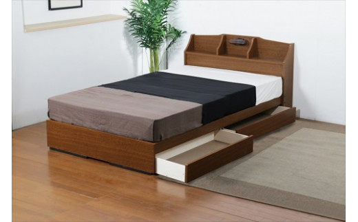 【組立サービス付】K321 ダブルサイズベッド 国産ポケットコイルマットレス(108618)付(ブラウン)(1332)