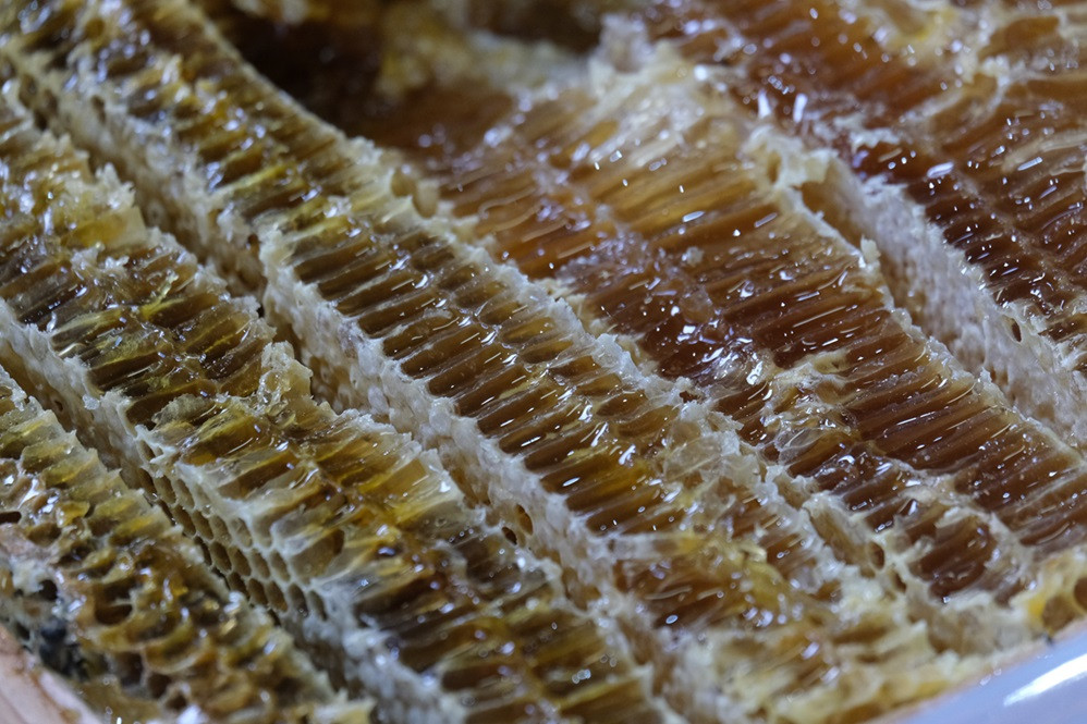 蜂さんが毎日働き集めた食料であるハチミツを「使わせていただいている」ということを忘れず、丁寧に手作業で採蜜しています。蜂さんの生活が保たれるよう採蜜の量を調整したり、冬場には巣箱の防寒対策を行ったりと、蜂さんと共存することを大切にしています。