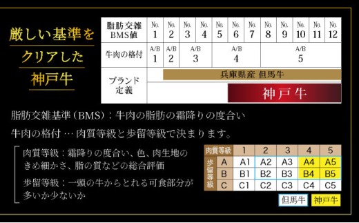 肉質や霜降り度合いなど、厳しい格付け基準をクリアしたお肉だけが、但馬牛の中でも「神戸牛」の名を評されます。