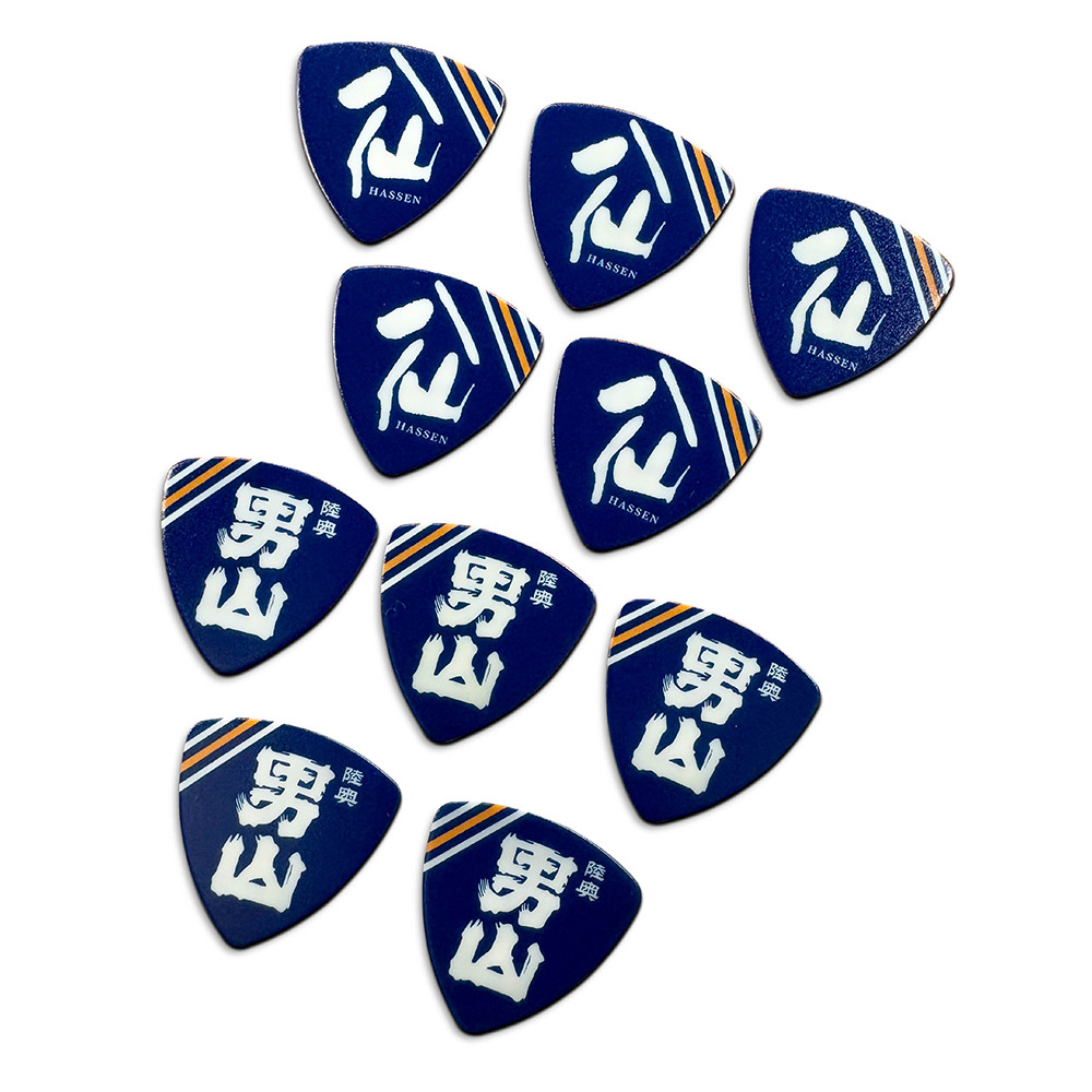 青森県八戸市の地酒、八戸酒造「陸奥八仙」「陸奥男山」のロゴが両面でプリントされたピックです。