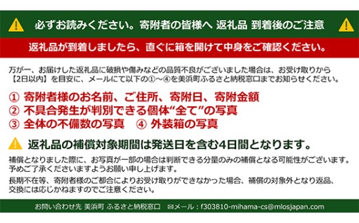 ※お礼品不備に関する対応は、お礼品到着日から1週間となります。